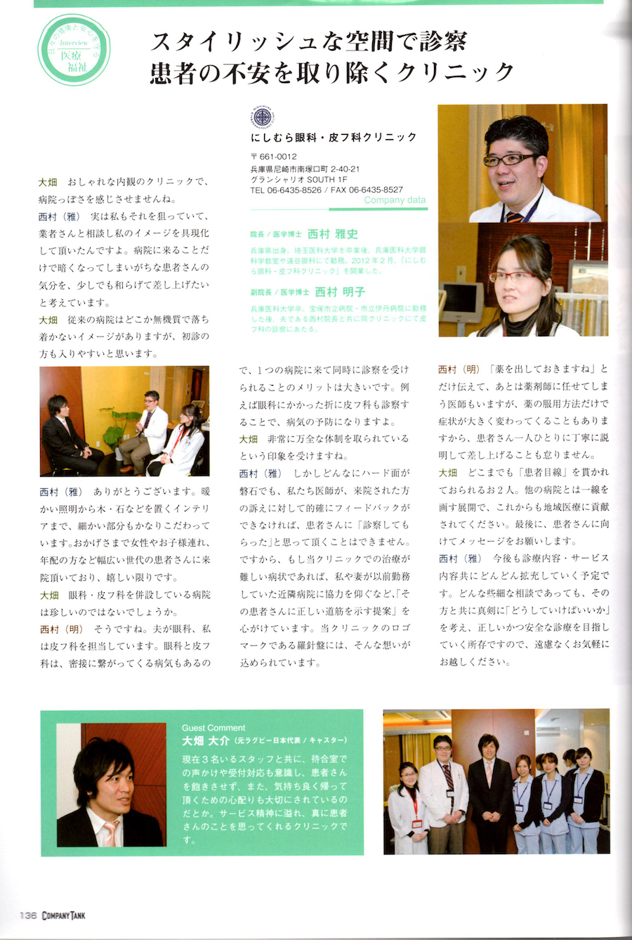 にしむら眼科・皮フ科クリニックが雑誌COMPANY TANKに掲載されました。
