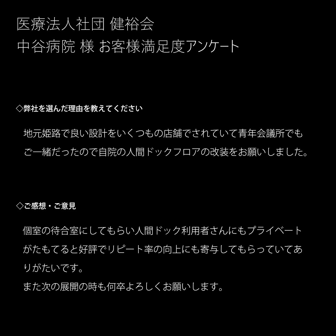 - 業 種:病院 (人間ドック受診者用ウェイティングルーム及び更衣室)