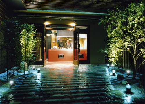 ![]() ▲ アプローチ:エントランス正面に朱塗りのかまどを配置 |