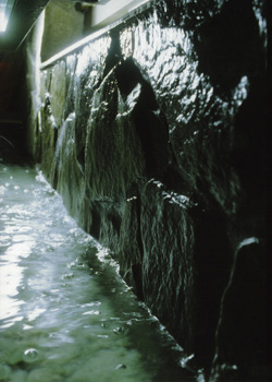 ![]() ▲ガラス階段 川から滝となって流れる水の上をのぼる |