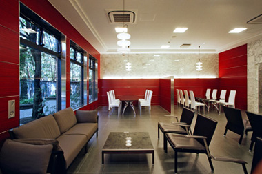 | ▲ホール連絡通路より受付カウンターを望む | ▲旅行サロン |