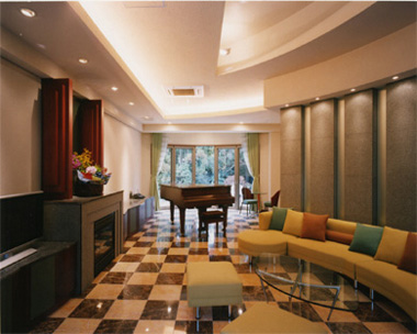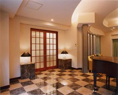 床:大理石貼・床暖房埋込、天井:間接照明 |